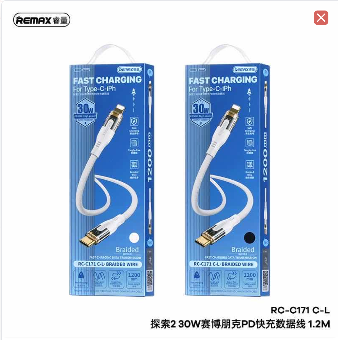 RC-C171 C-L 30W ខ្សែសាក Type C ទៅ Lightning